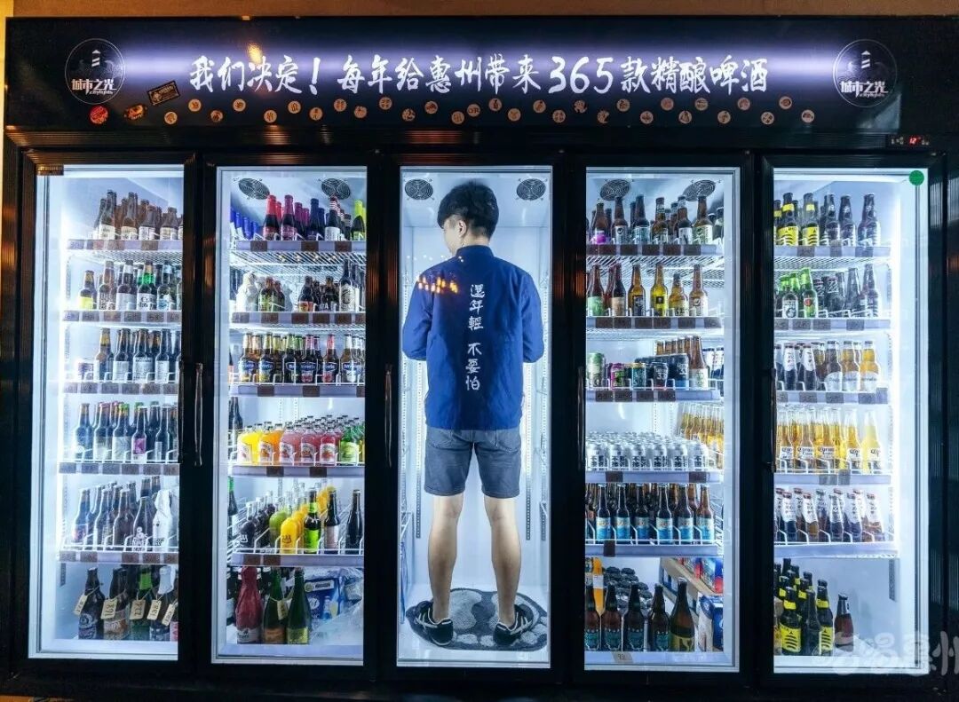 好看的皮囊千篇一律,有趣的灵魂万里挑一。吸引人的还有店铺新设计的冰柜,中间预留的位置则是给有趣的你打卡拍照,和精酿啤感受同一温度。