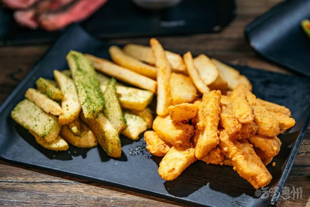 三色薯条,顾名思义三种味道,芝士黑松露酱/海苔蛋黄酱/咸蛋黄,一个比一个诱人,个人觉得蛋黄香味更是吸引我。