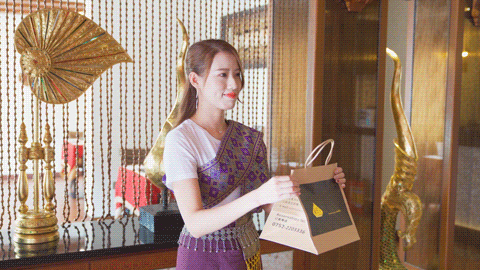 “来到泰国”,当然要“刷我的卡”,虽是谐音老梗。但是看到身穿泰国传统服饰——恰可拉发特的美貌小姐姐,内心默默os“卡拿去~”
