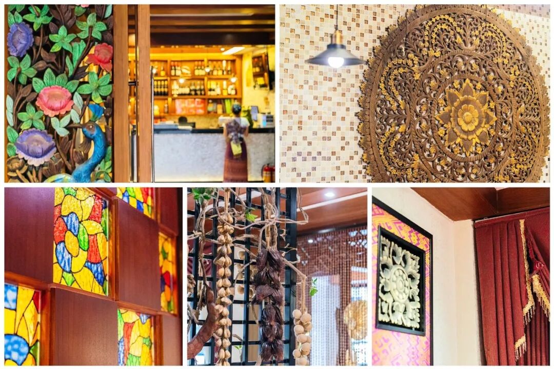 各式泰国工艺品星罗棋布点缀其间,一抬头,一垂眸都能发现不一样的精致用心,给食客最地道的泰国体验。