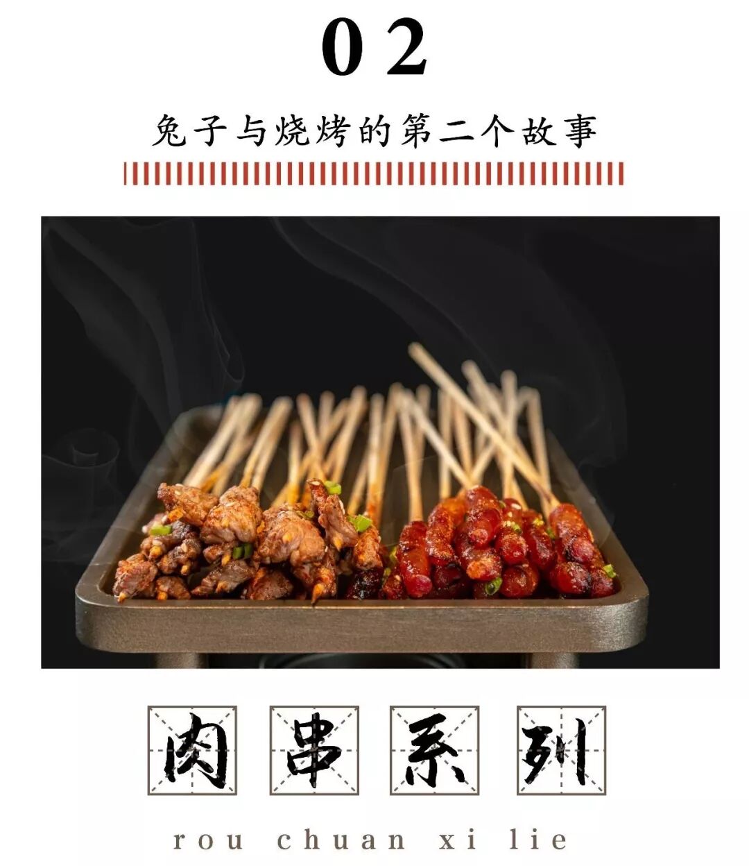 兔十八将传统的烧烤串转变了形式,按手来卖,一手十串,让你过足烧烤的瘾。