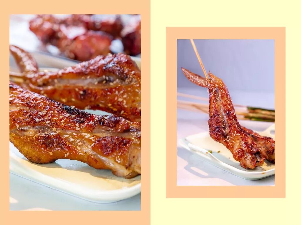 烧烤就应该是无肉不欢!让你大饱朵颐的鸡翅,滴着点点的蜜糖,很是诱人,微焦的表层和肉融为一体,每口都能吃到带着香甜气息的鸡肉。