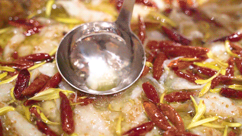 趁油温还很高的时候必须赶紧上桌,保证客人能吃到超完美的第一口,千万不能错过酸菜鱼的“黄金10分钟”呀~