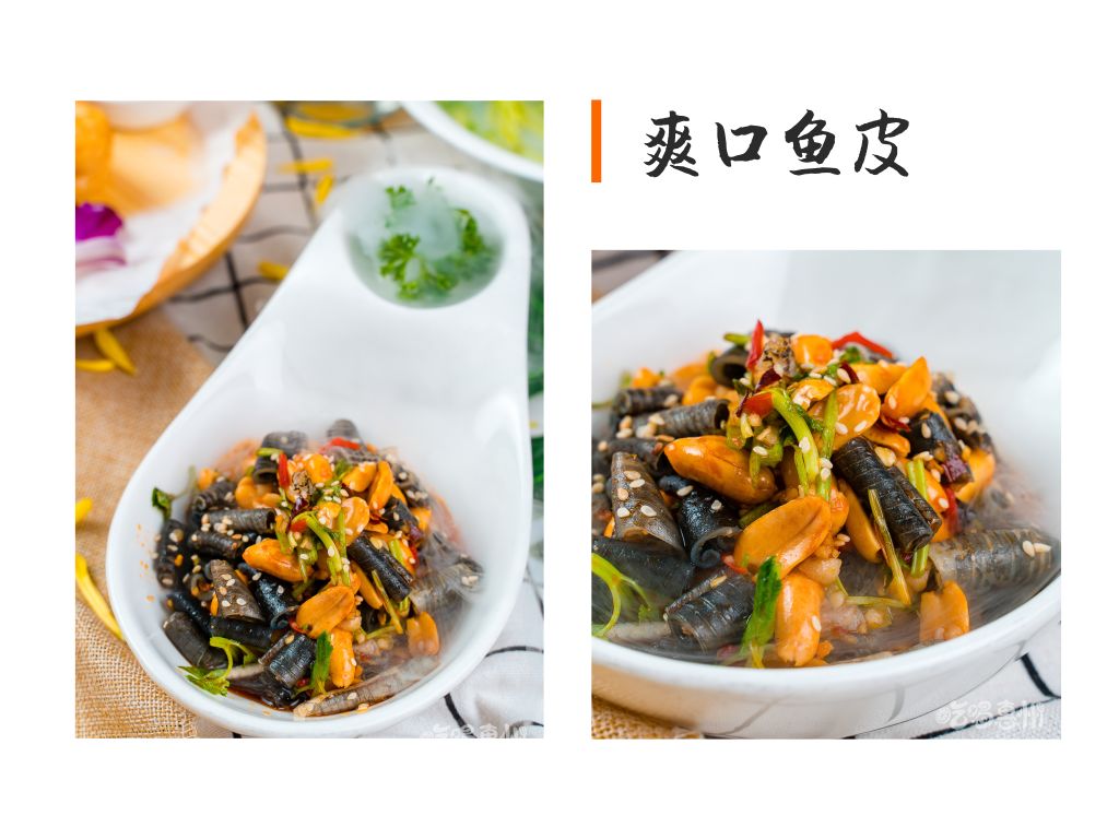 凉菜里小编最心水的就是它啦,Q弹爽口的鱼皮加上酥脆的花生,还带着梦幻的仙气~简直打开新世界的大门,酸辣的口感极为开胃,吃饭前来一份最好不过啦!!