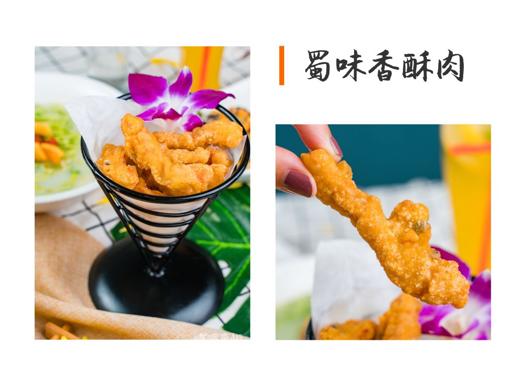 金黄酥脆的香酥肉是舌尖上的情愫,上桌后迫不及待一口咬下去,肉汁四溢,满口余香,酥脆中带点微辣,更适合趁热吃哦!