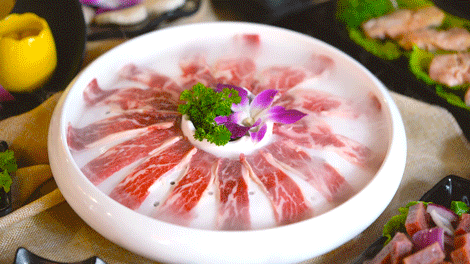 每一块肉都十分新鲜,肉质鲜嫩,色泽诱人。四周烟雾缭绕,仿佛自带BGM,仙气十足。