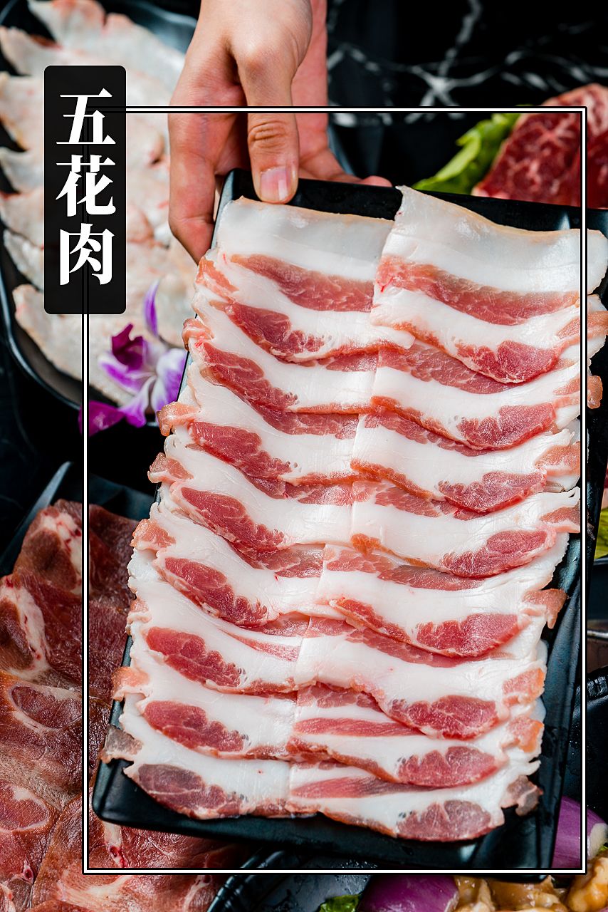 精选的雪花肥牛,肥瘦相间,每一块都切的薄厚适中,纹理十分漂亮,犹如大理石纹路一样镶嵌在肉里。