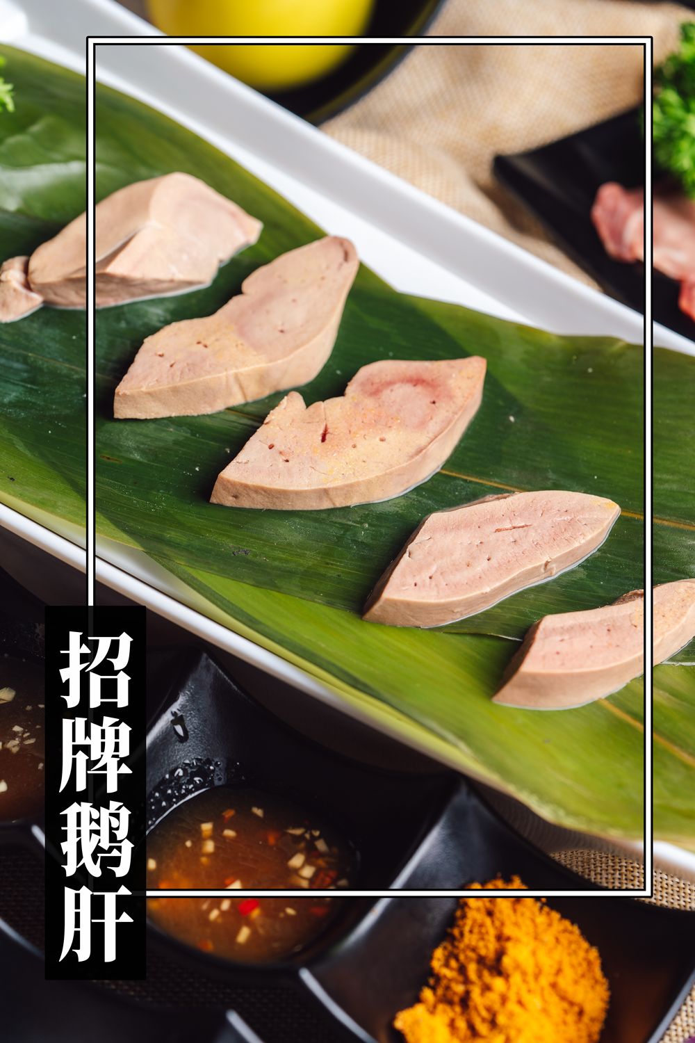 精华之所在的鹅肝,每一块都浓郁无比,细腻带一点湿润感。色泽洁白,光滑润亮。