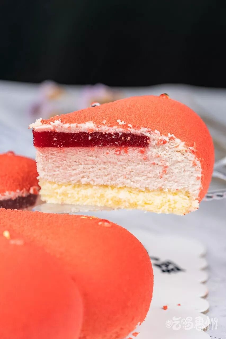 喜欢这款树莓慕斯,心形的造型很讨人喜欢,粉粉的外表让人无法移开视线,吃上一口怕是能变成粉粉的小可爱吧。