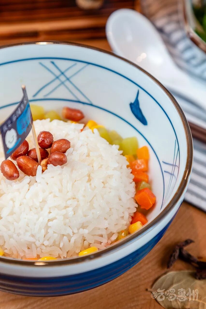 米饭也很讲究,用的是泰国香米,再搭配莴笋、玉米粒、胡萝卜,光是卖相就让人食欲大开。