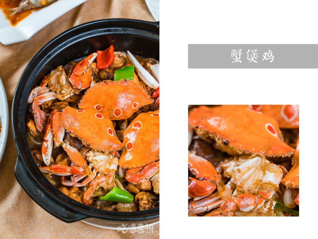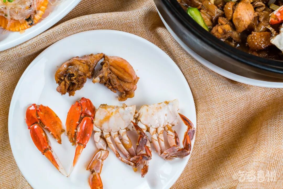 鸡肉肉嫩多汁而入味至极,每一块都吸收了酱汁的精华,底汁捎带着螃蟹的鲜美,更有海洋的香甜,一口下去,同时享受海陆两地的美味~