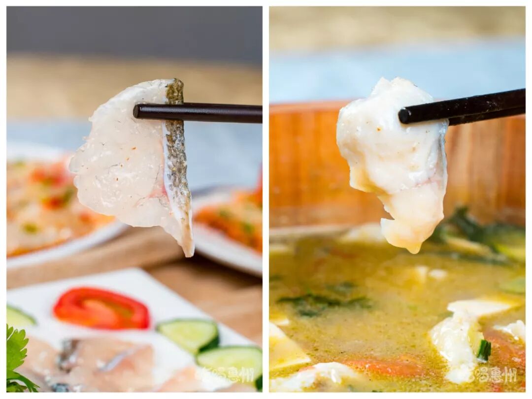 每一份都是活蹦乱跳的鲈鱼,肉质鲜美,保证现点现杀。片鱼师傅的手艺一定要精湛,才能切得晶莹剔透,确保石头2分钟就能将鱼肉烫熟。