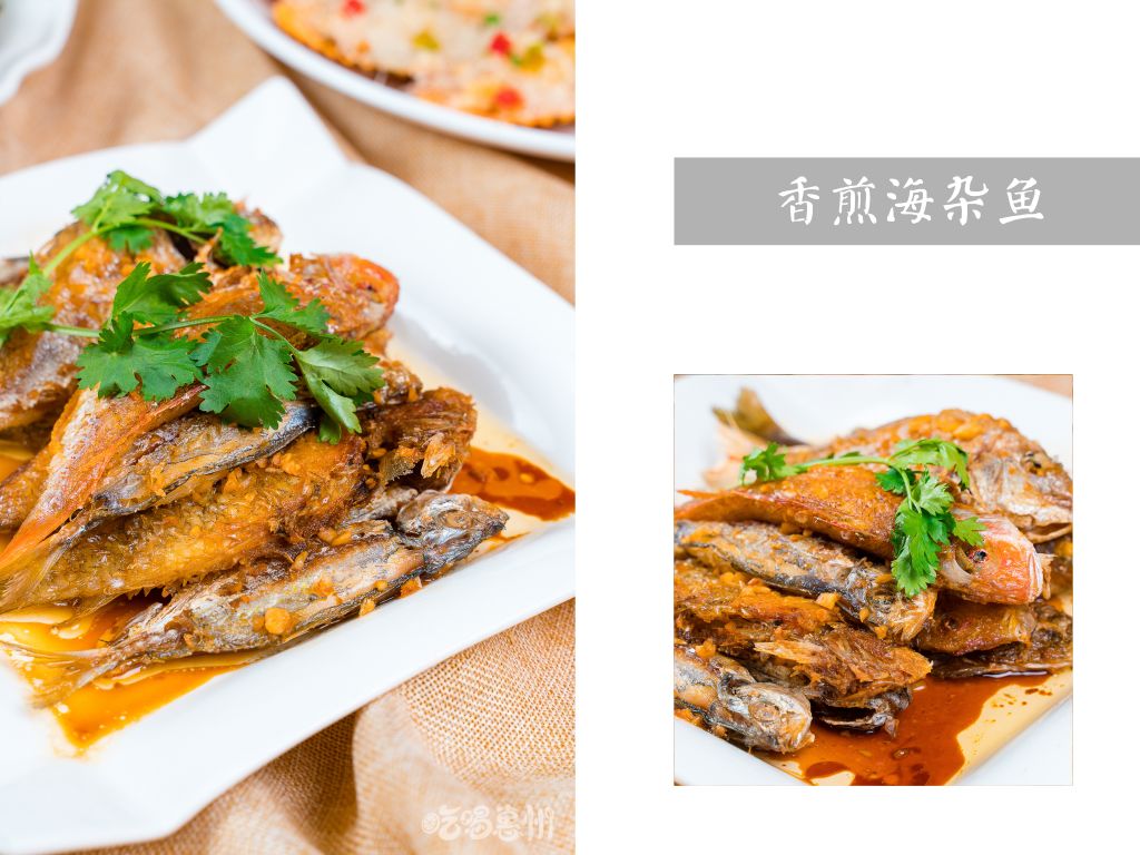 小海鱼被煎至金黄色,外皮焦脆,鱼肉反之却极为鲜嫩,两种不同的口感在口腔中碰撞,就只剩好吃两个字。