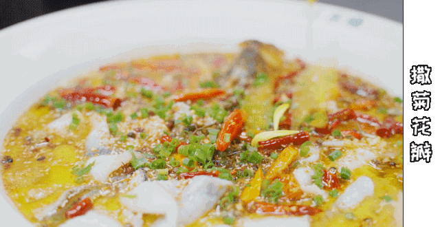 还有最后一步“天女撒花”就可以上桌了。被清新菊花点缀后的酸菜鱼,除了麻、辣之外,还多了一股清香,很特别。