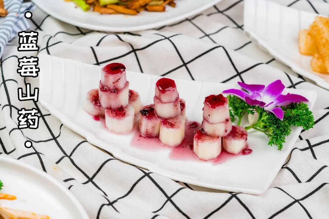 这道菜十分精致,光是摆盘就让人油然而生一种舒适感,山药在蓝莓酱的点缀下变得秀色可餐。