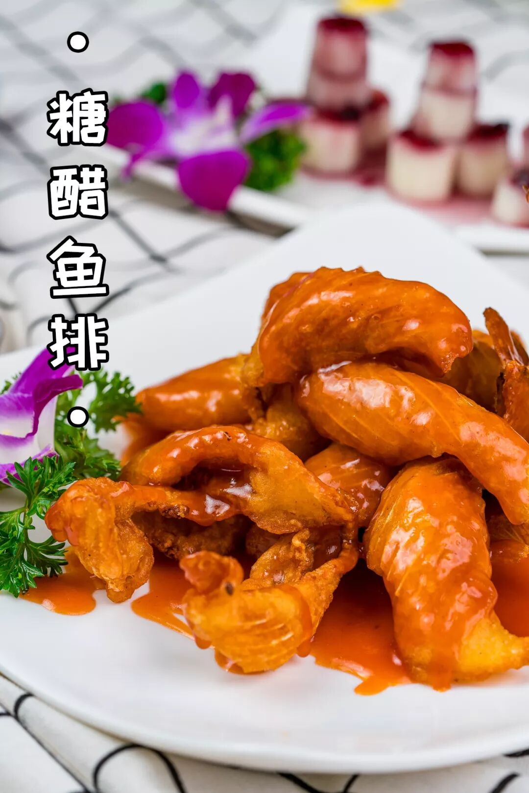 还未下口就开始分泌唾液,弹牙劲道的鱼排浇上糖醋浓汁,满足的令人欲醉欲仙。