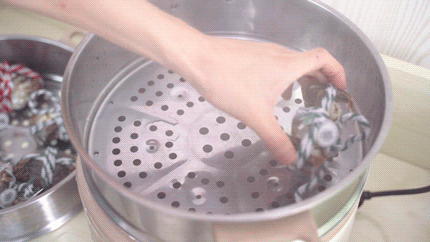 将特配的紫苏包放入水中和姜片一起熏蒸