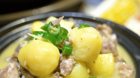 曲奇最喜欢里面的土豆,入口绵软。排骨则色泽诱人、酥脆,咬上一口,犹如汤汁从排骨的骨髓里爆出来渗入口腔。