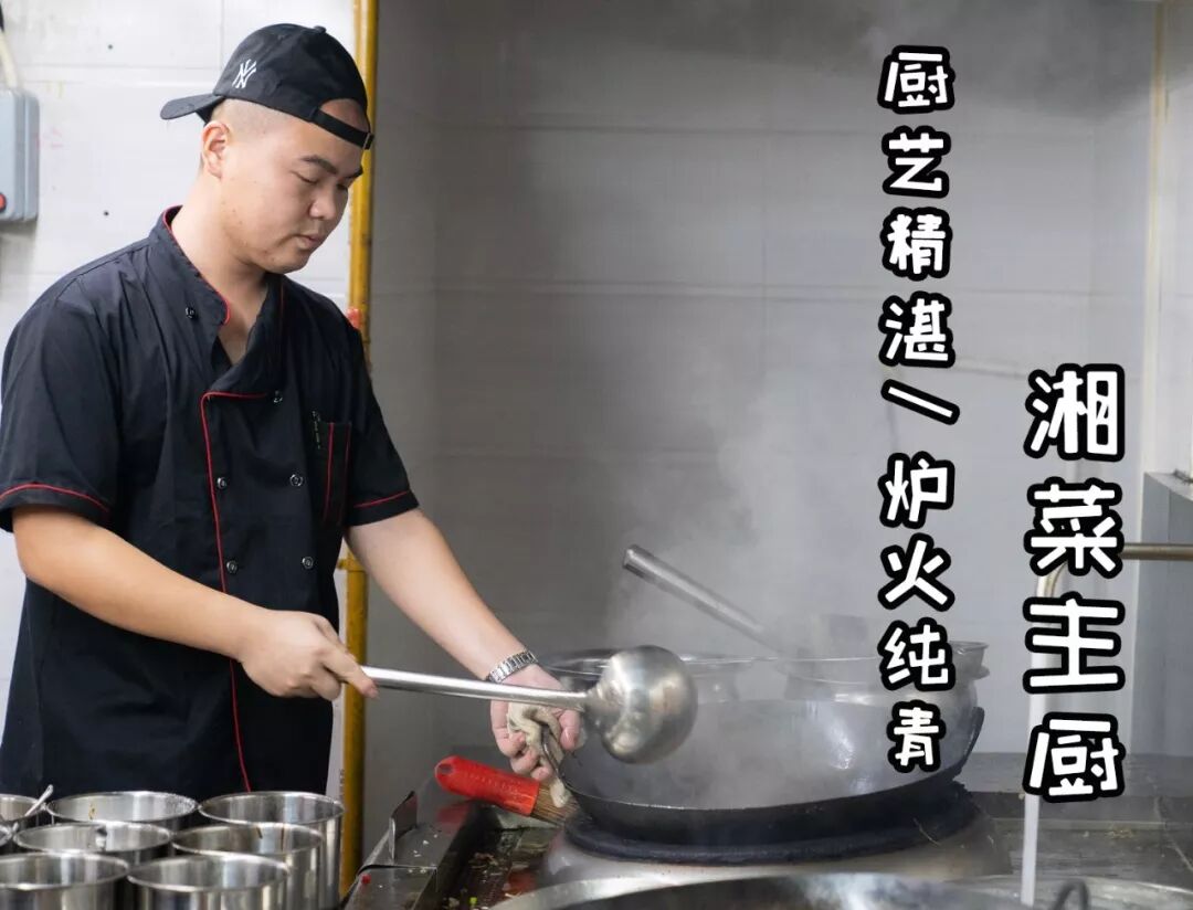 厨房里头,湘菜师傅的精湛厨艺,刀刃起落之间,动作十分迅速;炉火纯青的烹饪技术,将这一口家乡味煮的主食有滋有味。