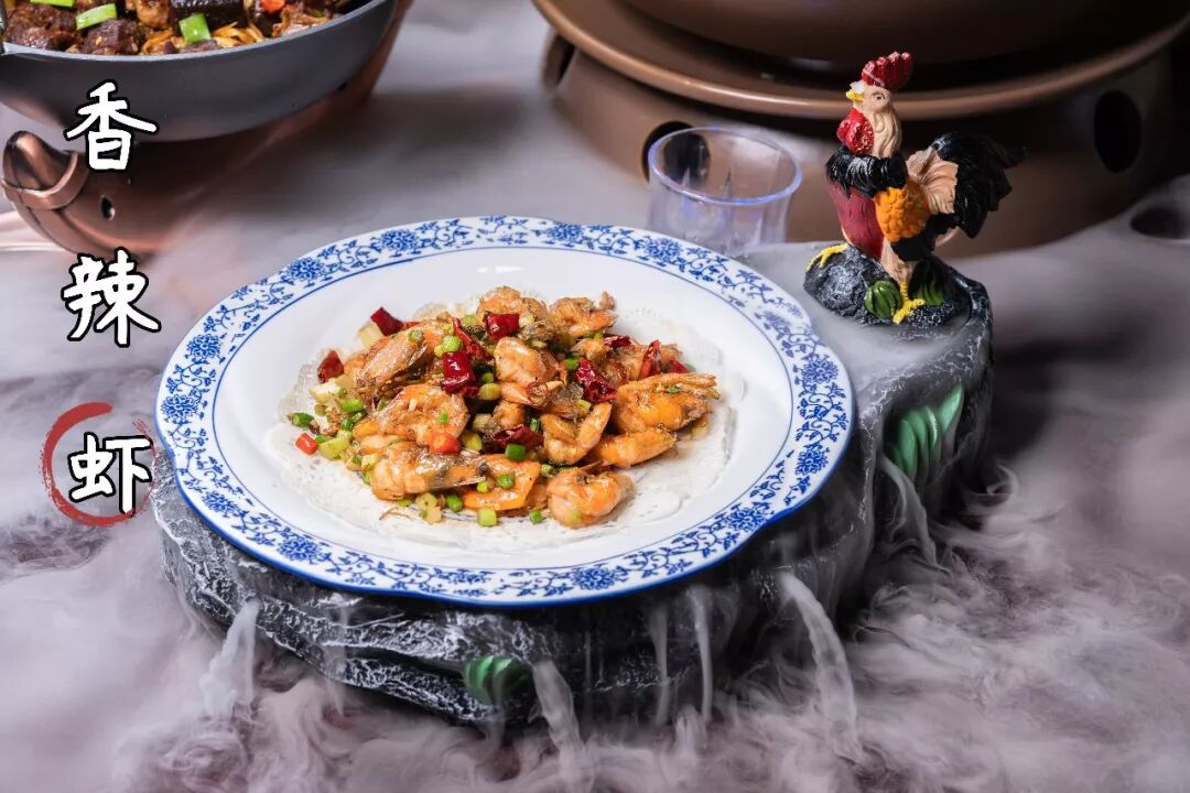 刚端上桌的香辣虾冒着滋滋香味,个个鲜润红亮,躬身如钩,瞬间让人食欲大增。