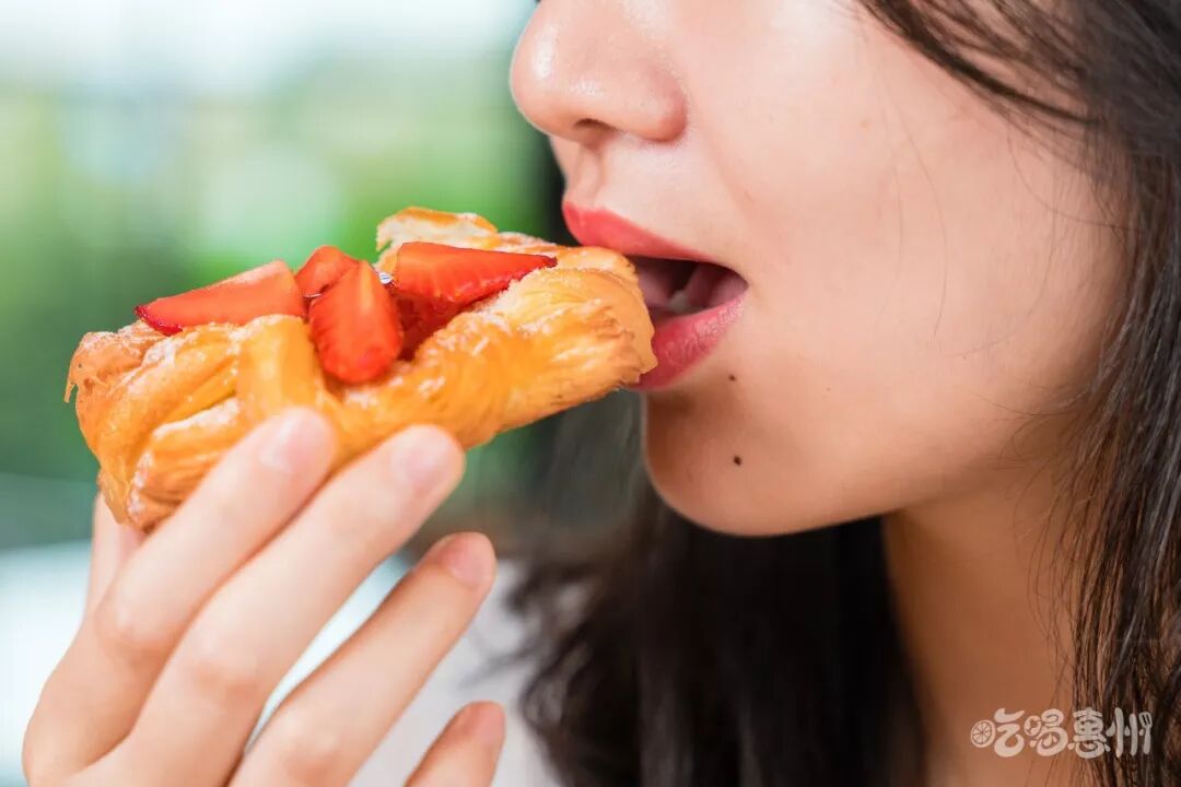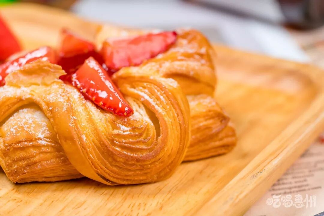 32层酥皮的丹麦面包,入口很蓬松,有种焦香的感觉。配上触动少女心的草莓果肉,在舌尖上绽放出果味烟花,绝对是女孩子们的心头好。