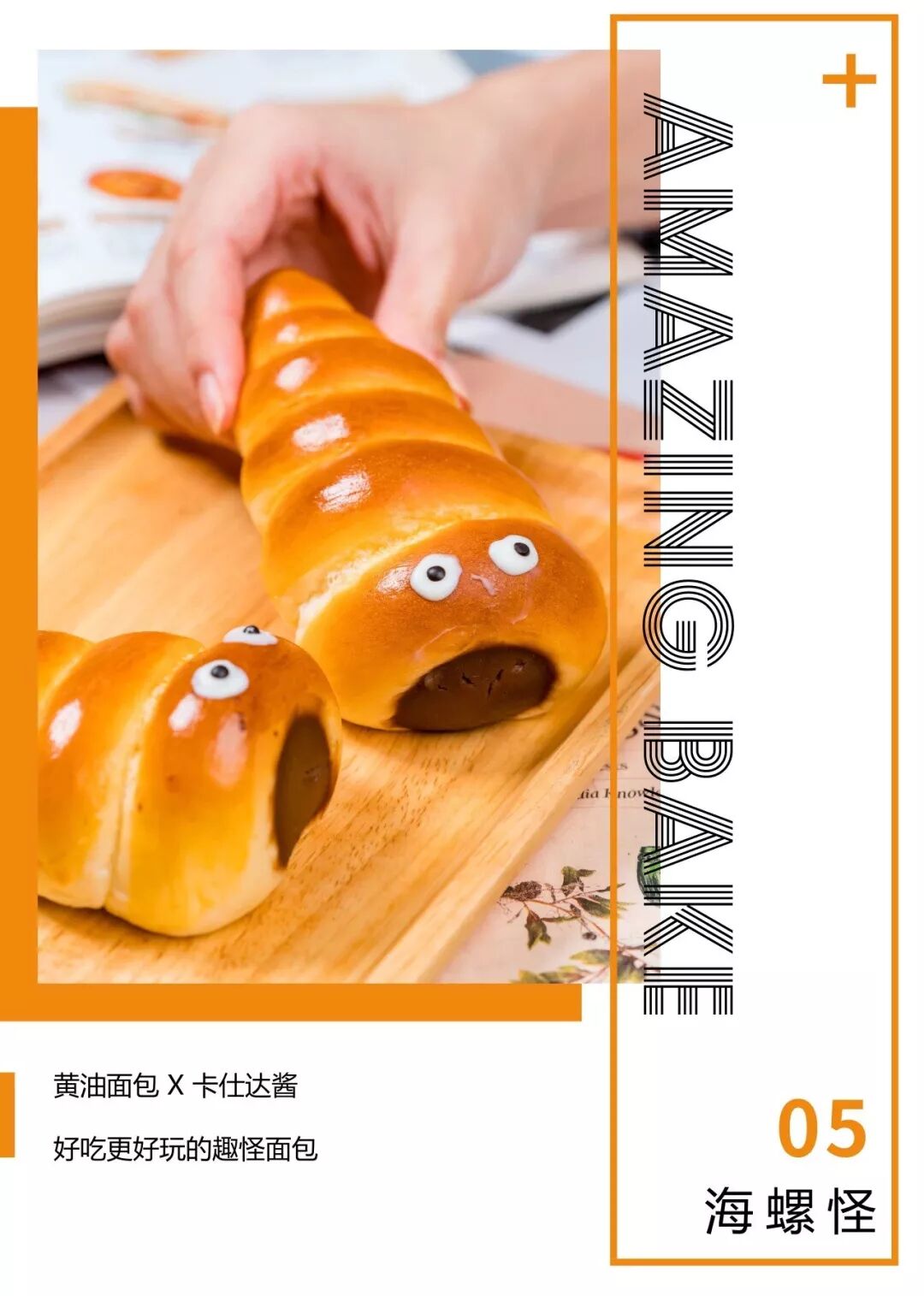 内陷的卡仕达酱是巧克力味的~吃起来甜甜哒,搭配外层的黄油面包刚刚好。这个小可爱,好吃更好玩,最适合不安分的饿魔发挥创意!