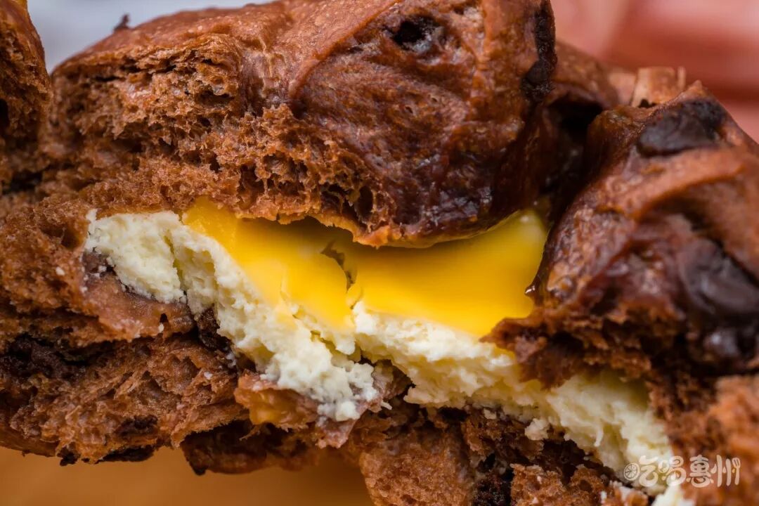 这款的芝士夹心略带酸味,吃起来全然没有其他芝士包的“腻”,搭配外层弹软的巧克力亚欧包,简直像开了挂!