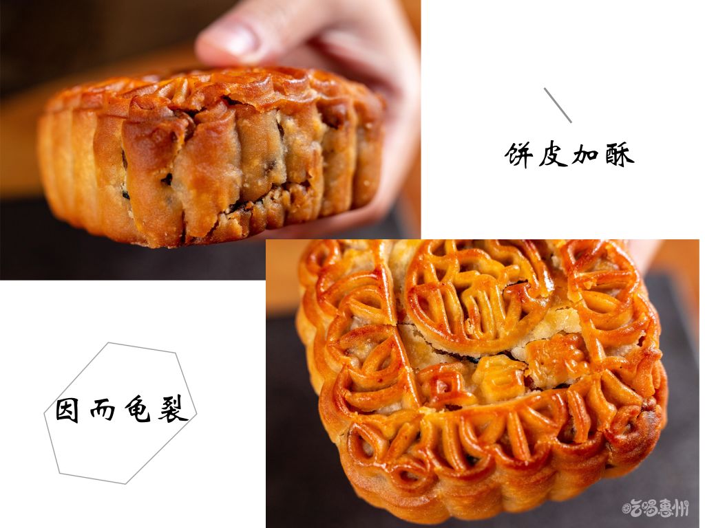 我们看到的成品可能会看到它“烂了”,其实这是由于它的饼皮加酥,经过烘烤后出现了自然龟裂的现象,让它的口感变得更加独特,因为这样才让它拥有不带任何修饰的“素颜”脸。