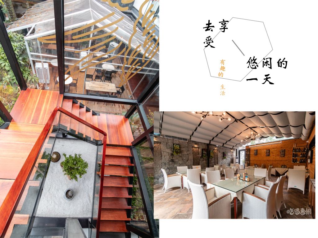 不论是户外的餐厅还是环境,都给人一种舒适悠闲感,精致的盆栽摆设与众多的植物相交呼应,映出了一片生机盎然的景象。