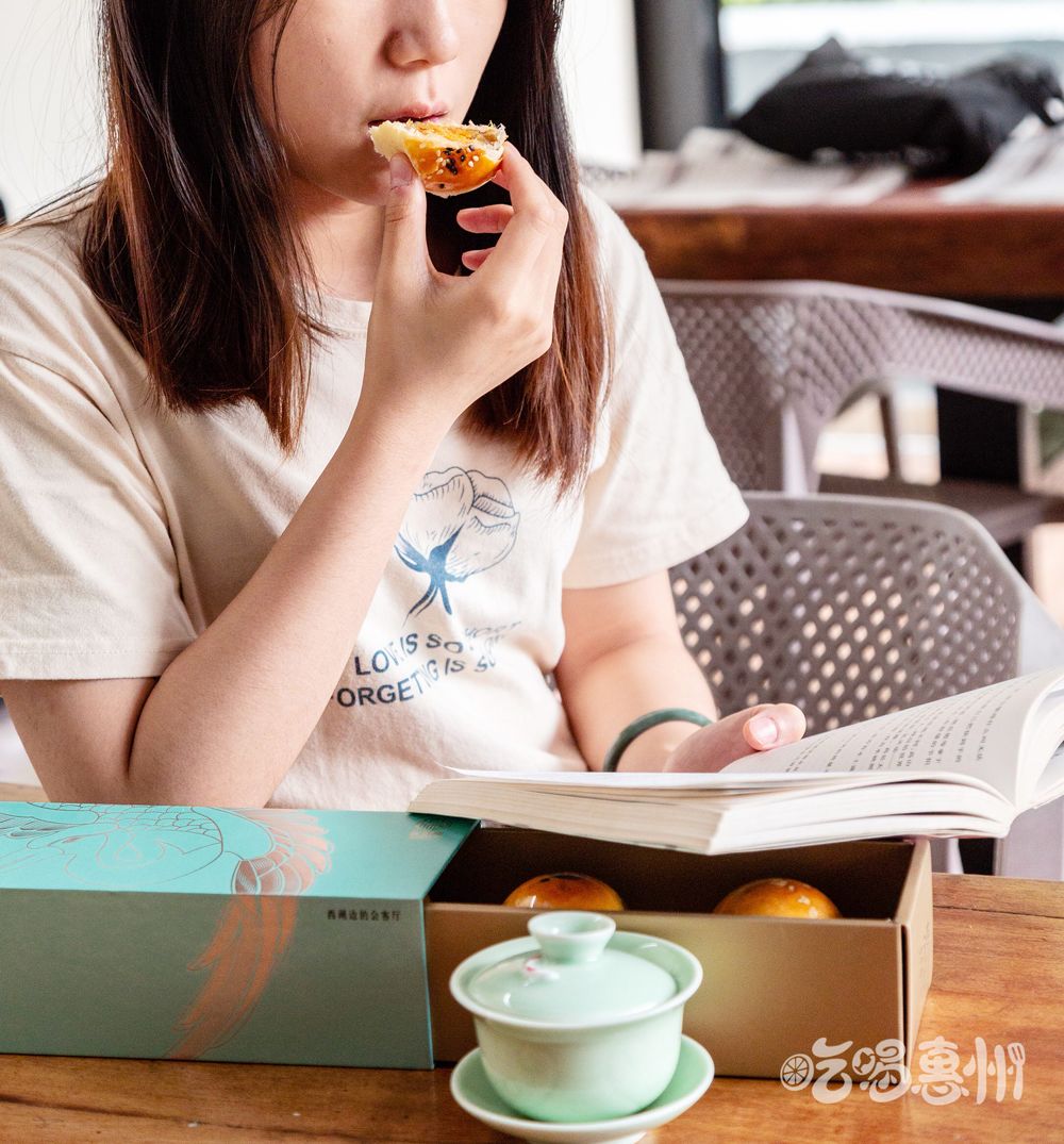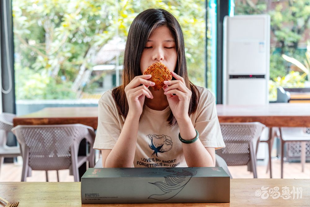 这个让惠州人挂念了这么久的叉烧皇,仪式感会让它吃起来更完美,一闻,感受它的香气;二切,内陷瞬间露出;三品尝;细细品尝它的味道,口感丰富,外表酥脆,内里丰富。
