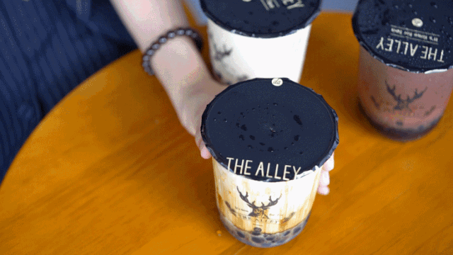 b、直接将吸管戳到底感受黑糖和牛奶的碰撞,非重度嗜甜者慎重。