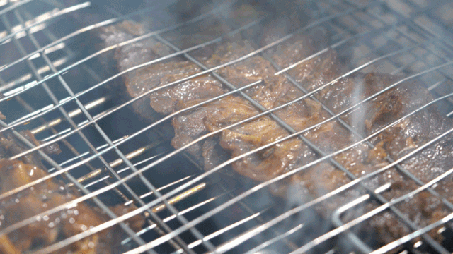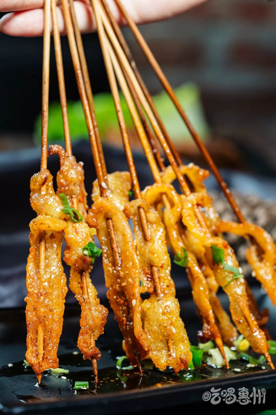 让人又爱又恨的牛胸口油,充满弹性的肉串送进嘴里,一口咬下去,感受它在齿尖爆出油汁,满口牛油香,还很有嚼劲。