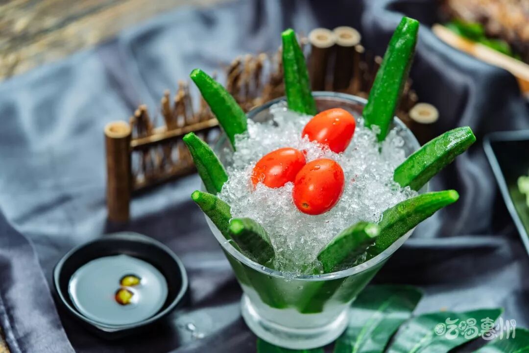 冰镇类非常考验食材的新鲜度,焯过水的秋葵穿着翠绿的衣服,傲立于冰山中,保持着它鲜脆的骄傲。配上一碟芥末酱油,吃一口,清神醒脑~
