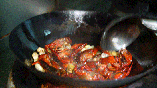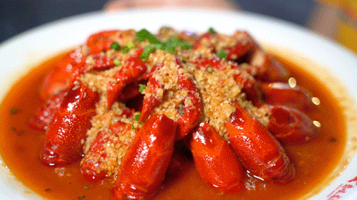 每只虾都要遵循传统工序,用香料炒制后,小火焖煮、大火收汁,才能华丽登场。