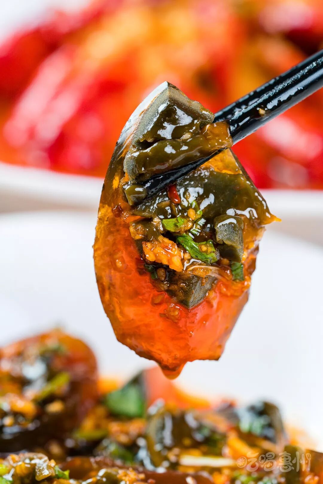 这道凉拌皮蛋是曲奇的私心推荐,凉拌用红油历经三小时熬制而成,来自主厨满满的爱,作为收尾十分适合。夹起一块,如同果冻般,入口滑溜。