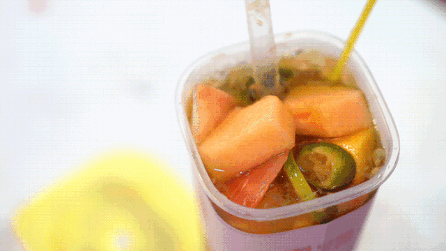 满杯都是溢出来的维生素C,肉眼看得见的新鲜感。一杯的分量刚刚好适合一人食,逛街简直是行走的聚焦点~