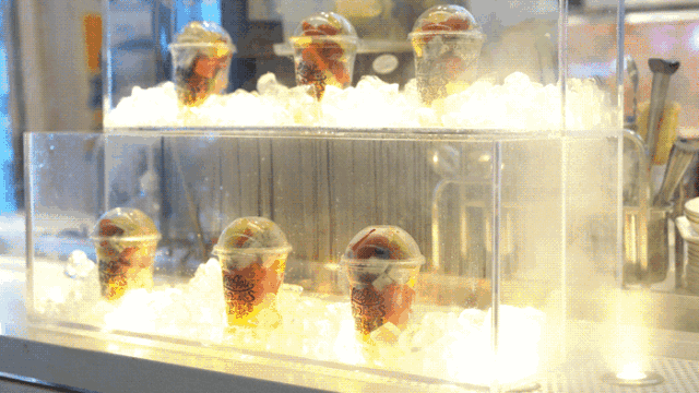 里果的甘草汁依旧是重头戏,每天必须新鲜熬制6h以上,给水果洗个美容澡,浸泡了甘草汁的水果,口感更好,带着丝丝甘甜。