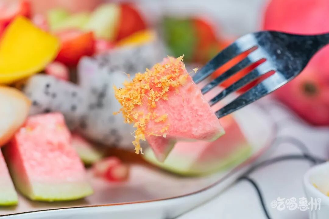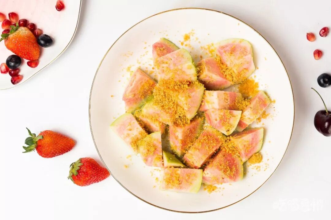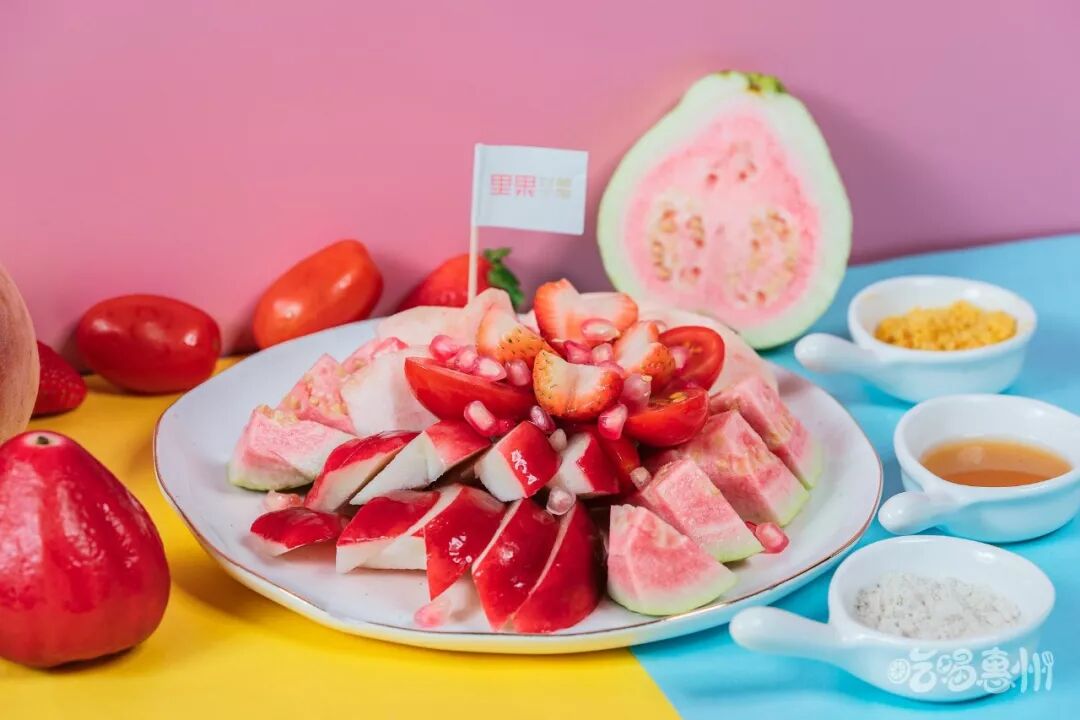 喜欢红心芭乐的小仙女可以点上一份小粉嫩,均匀地撒上南姜粉,口味的碰撞,把芭乐的鲜甜提升了一个level~