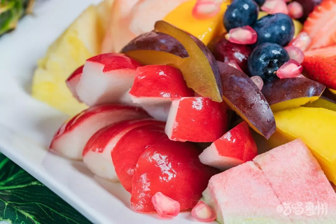 各种平时单独吃都爱不释口的“酸酸”水果组合在了一起,加上姜粉的独特的味道,酸加甜的绝妙搭配,每一口都刺激着味蕾,成了我到店必吃的一款拼盘。