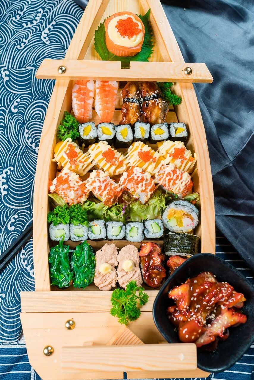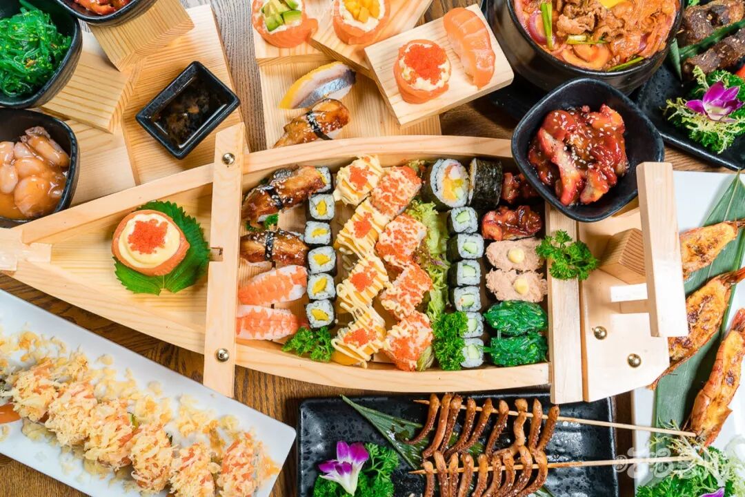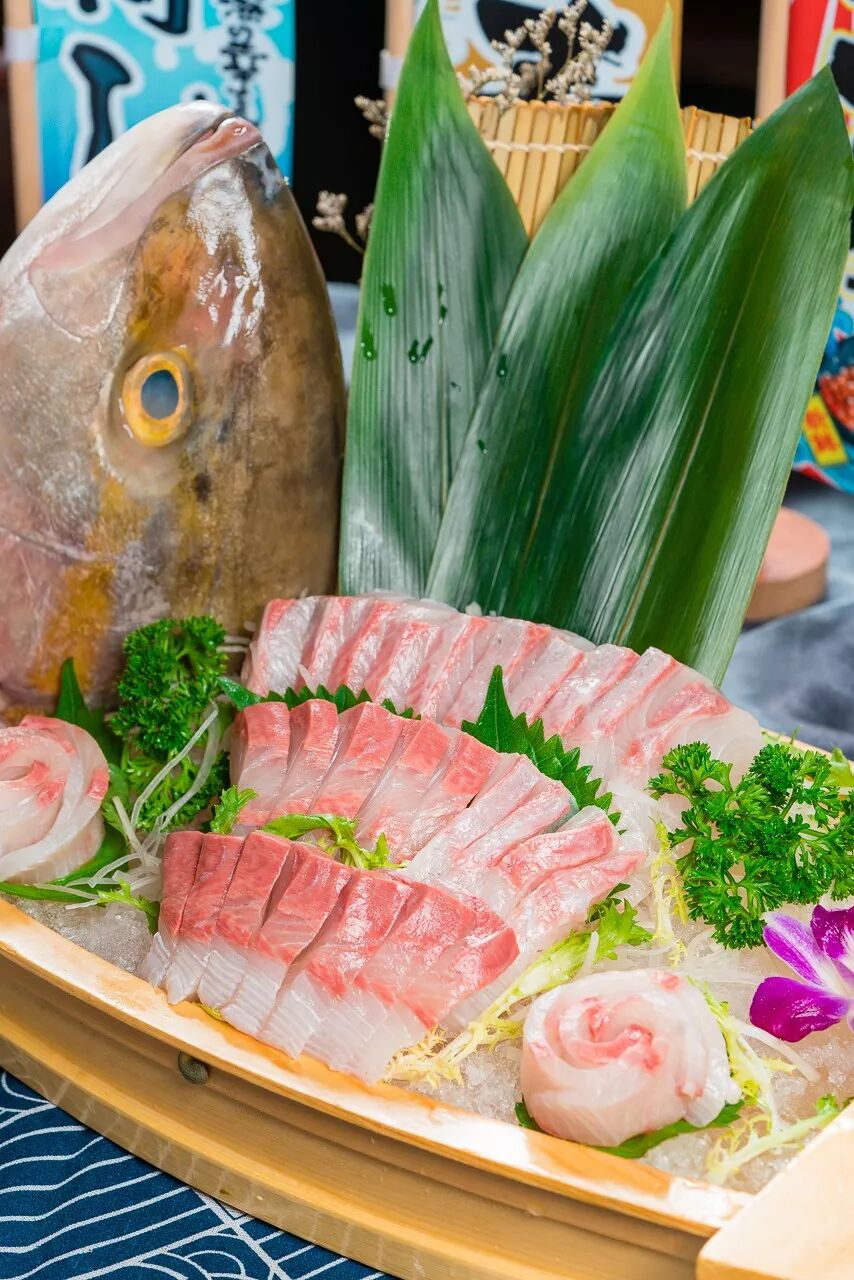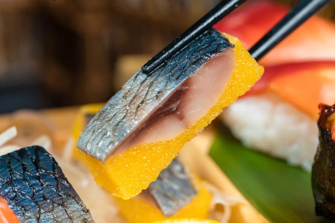 三文鱼寿司、吞拿鱼寿司、芒果鱼籽寿司