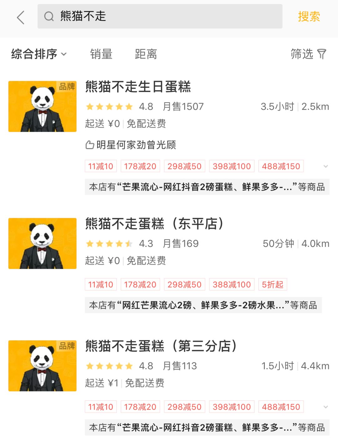 ②.在各大外卖平台搜索“熊猫不走”,即可下单