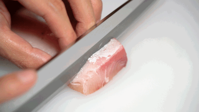 以整只鲷鱼制成刺身,极其考验师傅的刀工,同时也能够感受不同部位的鲷鱼,带来口感上的细微差异。