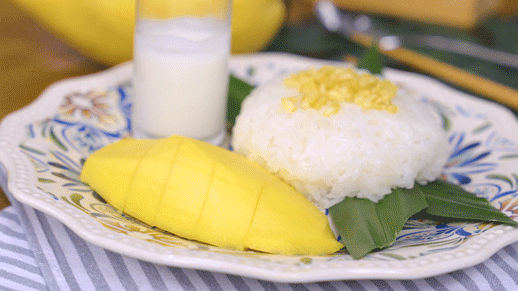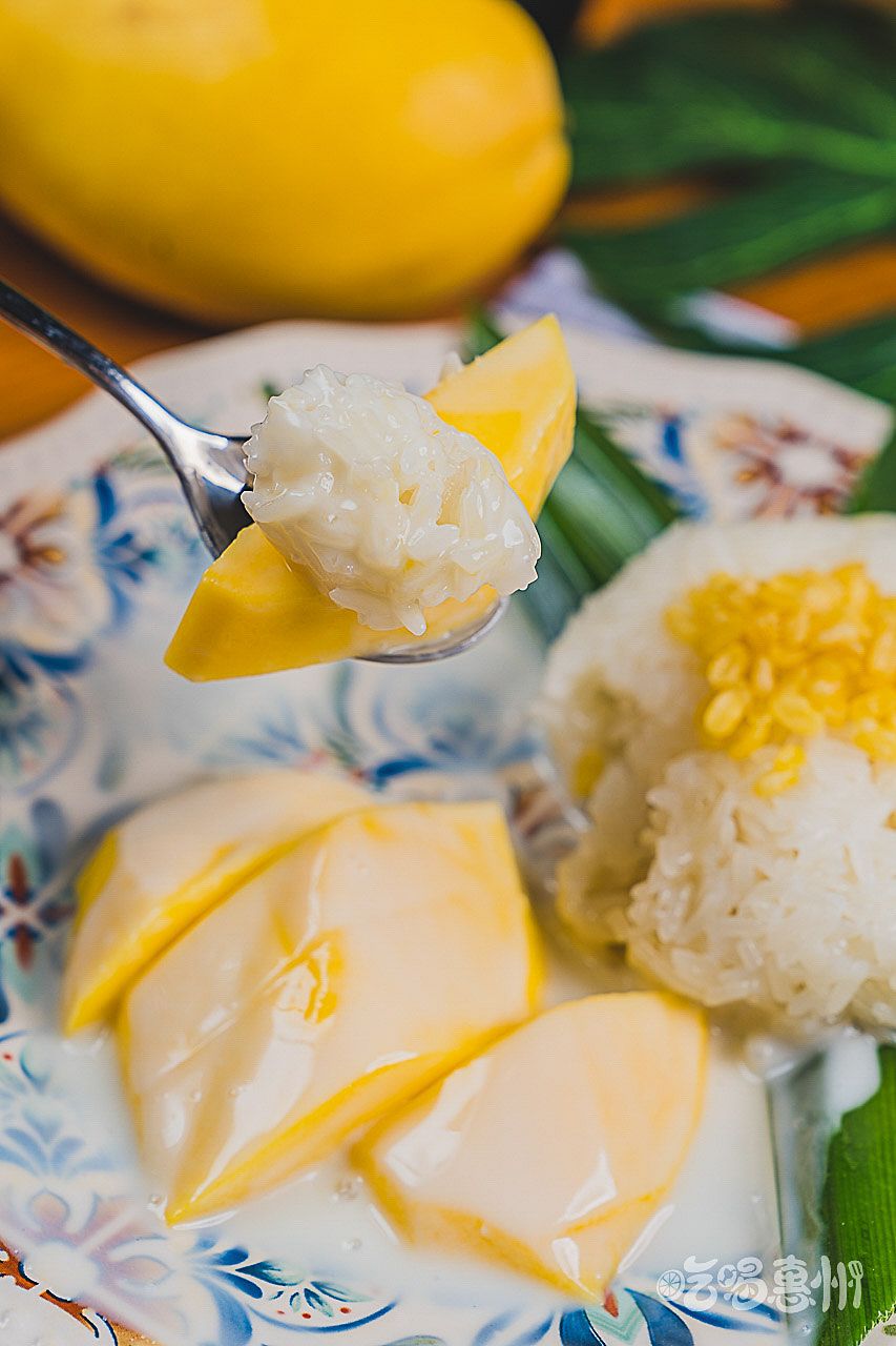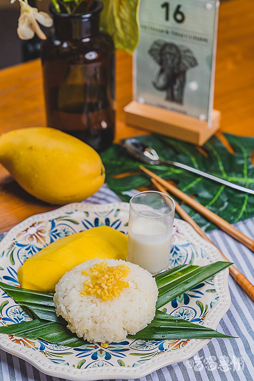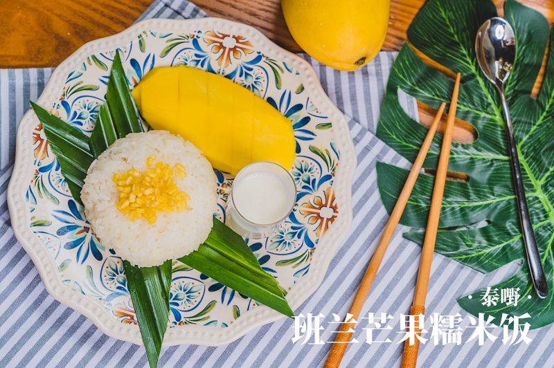 泰嘢家的班兰芒果糯米饭必选用泰国金腰芒,带有芒果特有的淡淡清香味,水分多,核小,班兰叶特有的天然芳香味,能让食物增添清新,升华整个口感。