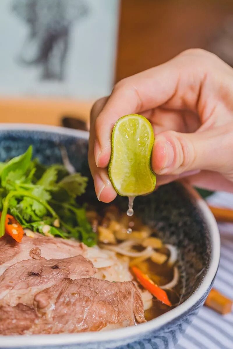吃的时候挤泰国小青柠搭配四味,调适合自己的味道。我个人很喜欢这勺汤,香且不腻。