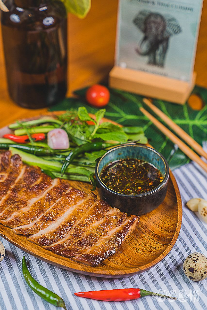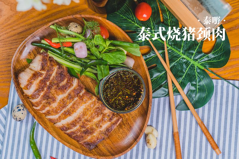 这道泰式烧猪颈肉从清新的卖相让人对他多了几分青睐。肥瘦比例最好的猪颈肉用秘制香料腌制的,下锅煎至两面金黄再放入烤箱烘烤才得。