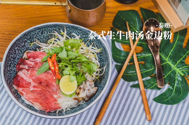 泰式生牛肉汤金边粉选自泰国金边粉,是当地最为地道的一道美食。