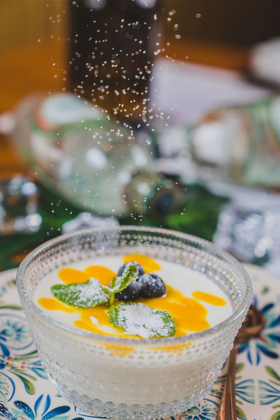 奶冻淡淡的椰子香味,加入用新鲜芒果熬制的芒果酱,味道柔和是芒果与椰子碰撞出的味觉。