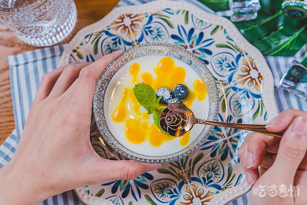 餐后的甜点,我选择了老板推荐的这份芒果椰香奶冻,卖相被点缀的分外妖娆,味道也没让我失望。