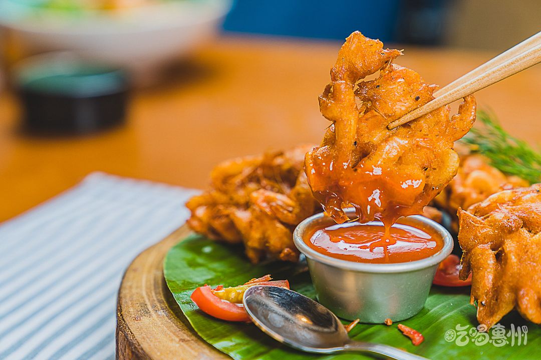 这道酥炸河虾饼也实属泰国地道风味,将新鲜的河虾利用在一起放在油锅里烹饪,简单的食材也可以变成一道精致小食。