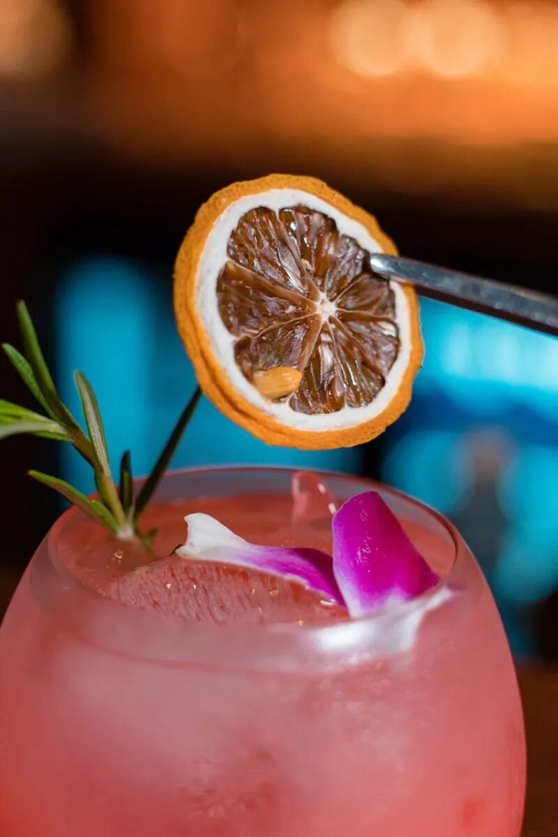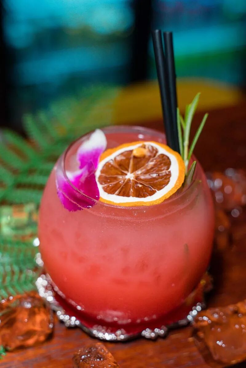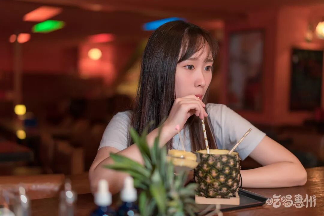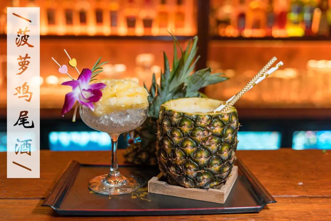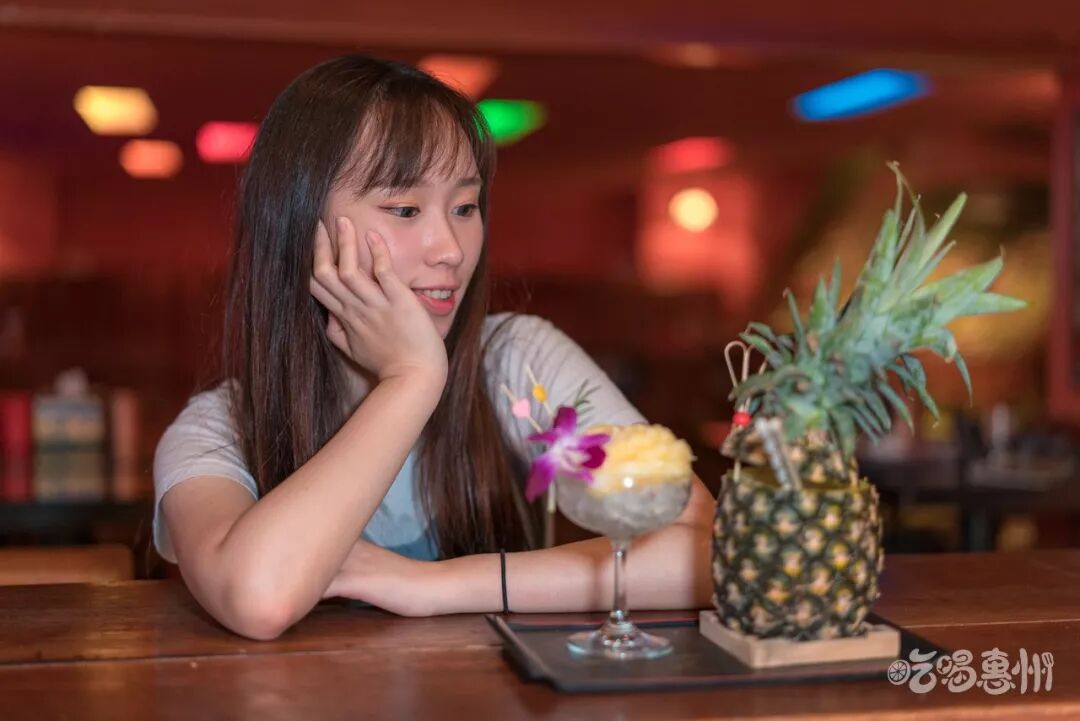 喝着热带风味的鸡尾酒,吃着清甜的菠萝果肉